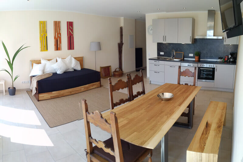 For easy wheelchair accessibility, we’ve made our apartments barrier-free with things such as roll in showers, land ramps, and an elevator to name a few. The furnishings have been hand carved by ourselves in our carpentry shop – the apartments are thus authenticly “Mischenried” inside and out.
