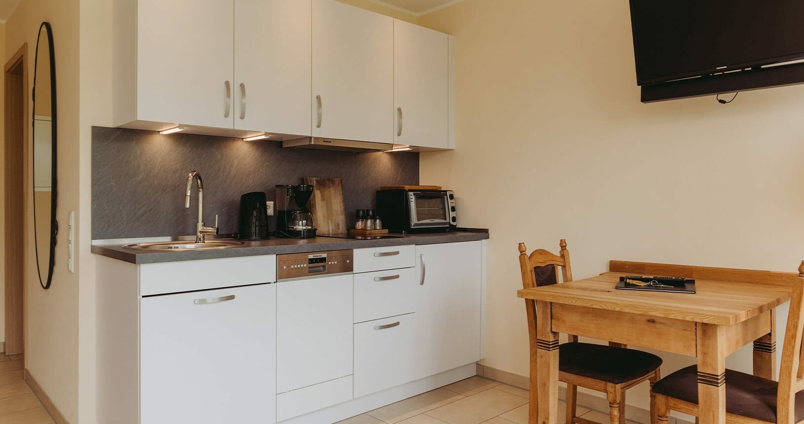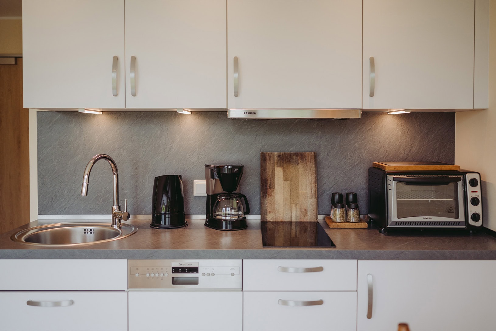 • fully equipped kitchen: stove, oven, fridge, freezer, dishwasher, water heater, (filter) coffee machine