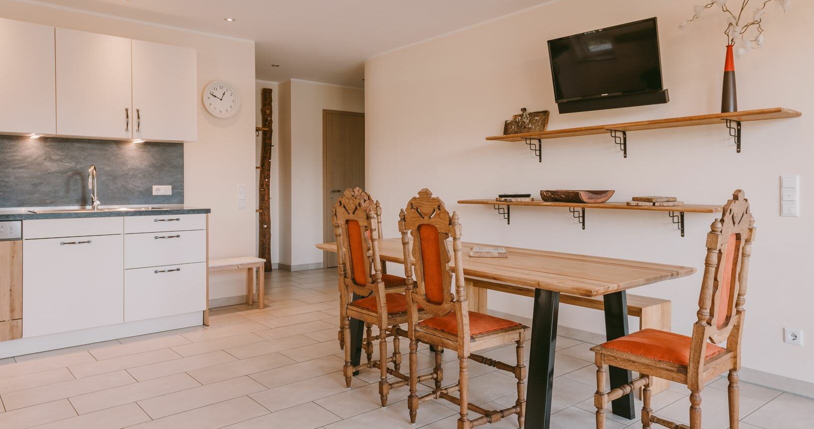 In line with the Mischenrieder style, this apartment is painted in warm tones and fully furnished with high-quality solid wood. The beds are crafted to provide ample space for even tall individuals, and each bed is equipped with a high-quality mattress, including the bunk beds.