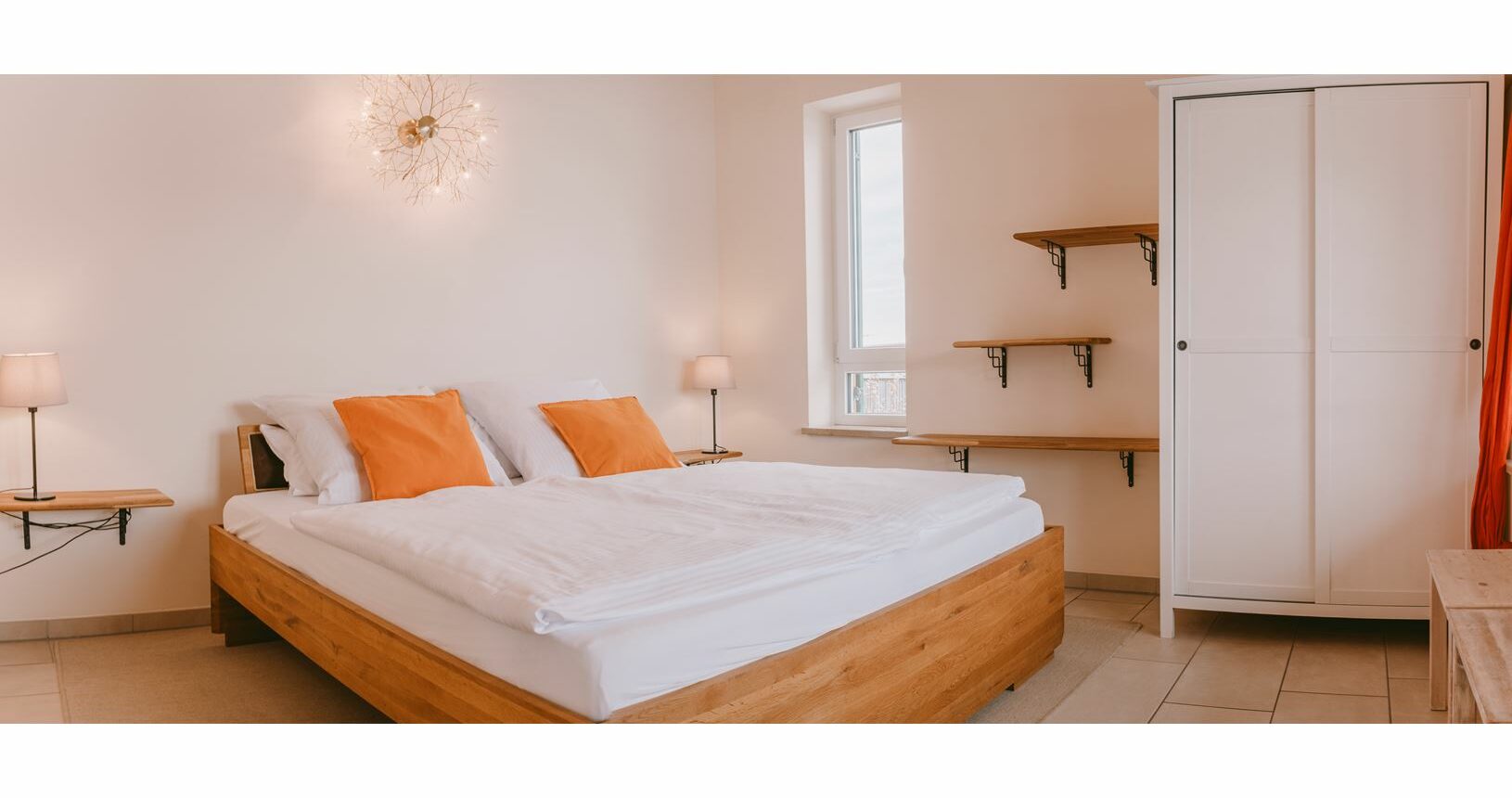 - one double bed (180cm x 200cm) in the master bedroom, open-ended