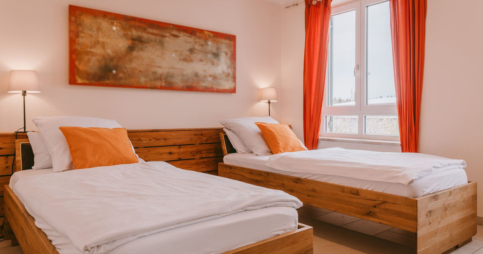 Like the other beds in the bedrooms, these stackable beds are made in Gut Mischenried and offer high quality mattresses. In addition, all beds have been constructed with open ends to make sure that tall people can sleep in them comfortably.