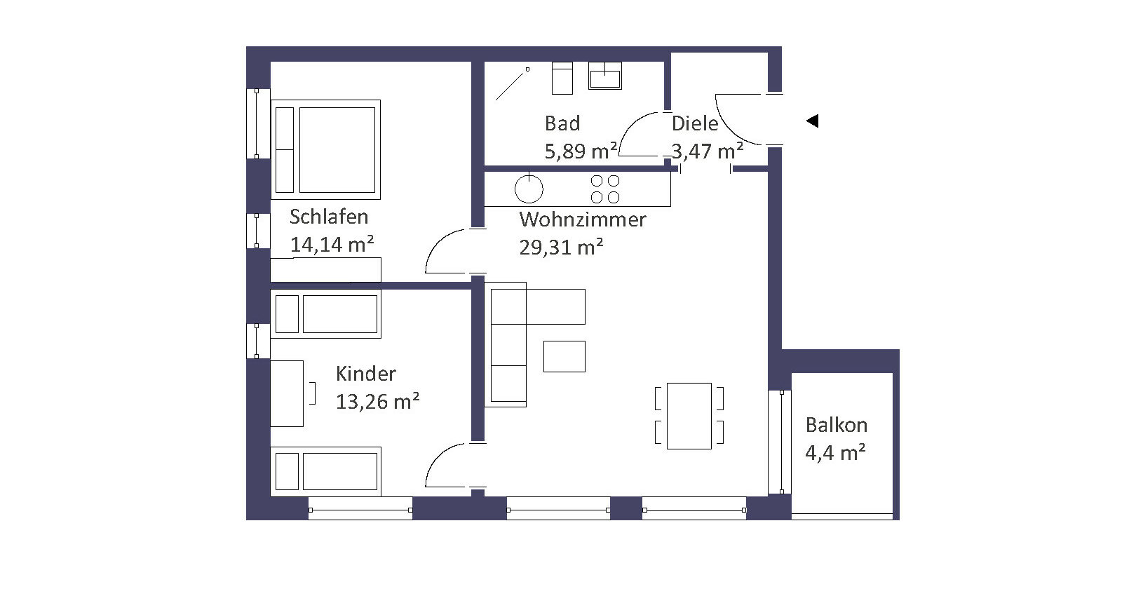 - Die Wohnung liegt an der sonnigen Südseite des Hauses