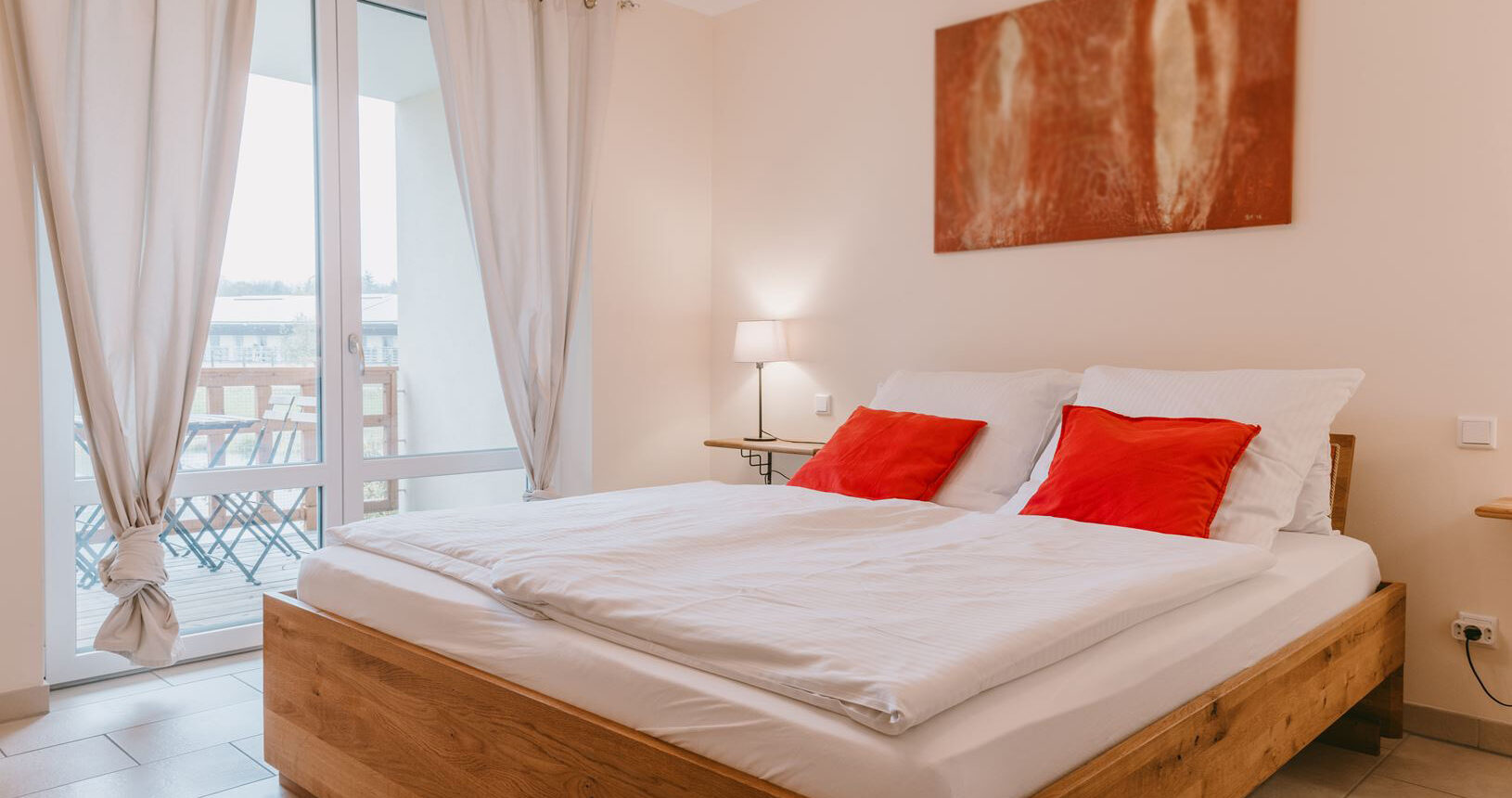 - Ein Doppelbett (180cm x 200cm) im großen Schlafzimmer, in Komforthöhe